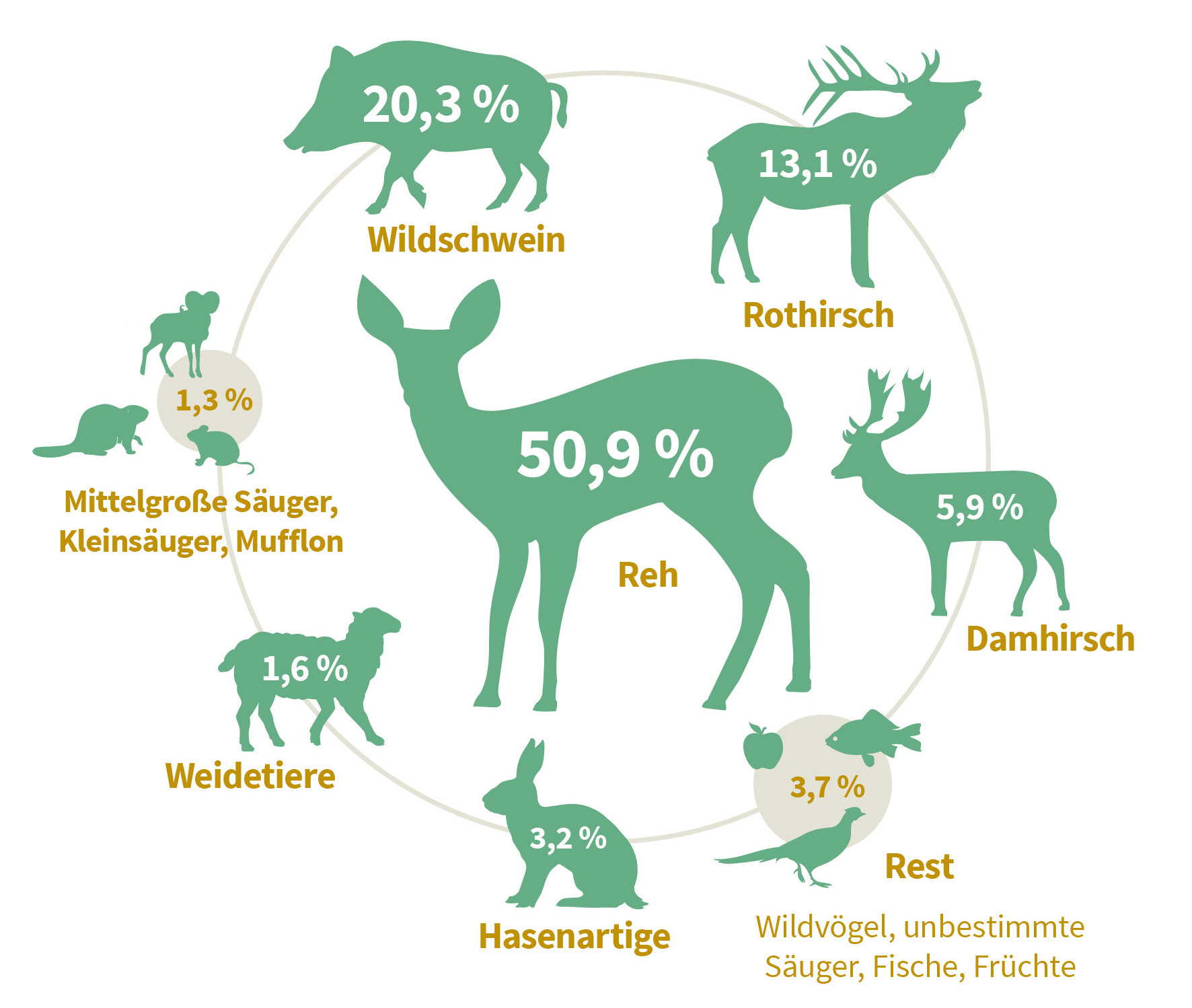 Ja. Deutschland hat einen sehr hohen Bestand an Rehen, Rothirschen und Wildschweinen, was die beständig hohen Abschusszahlen der Jäger*innen belegen.
